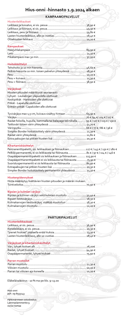 Tervetuloa parturi-kampaamo Hius-onnen kotisivuille